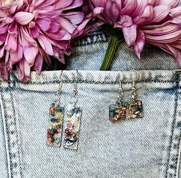 In this class, we will be making a pair of earrings (in the shape of your choosing) out of resin. Embedded within the resin, we will be adding flowers and natural elements found on the grounds of Baker Hunt (or brought from home) and/or other materials such as pigments or powders.